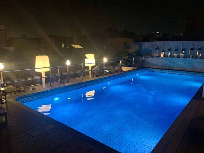 A diferencia de otros rooftops más animados, en La Terraza del Claris predomina un ambiente sereno, elegante y acogedor. Su decoración mediterránea, con maderas cálidas y vegetación cuidada, crea un espacio perfecto para desconectar.