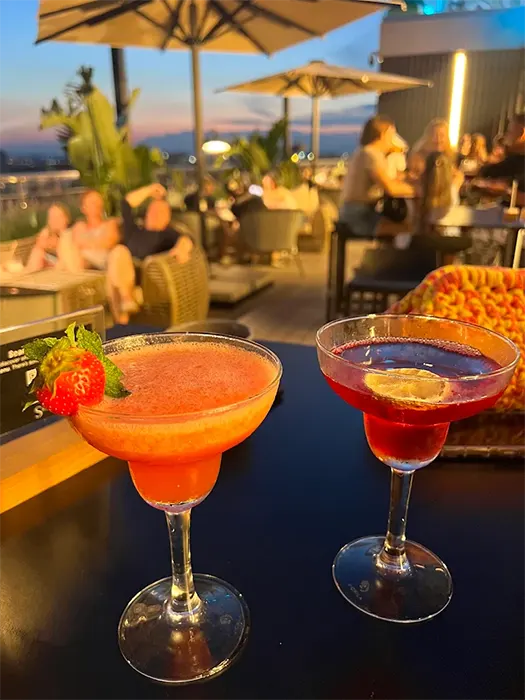 Si hay un instante en el que el Sky Bar brilla con todo su esplendor es al caer el sol. El atardecer convierte la terraza en un escenario de postal, con el cielo tiñéndose de dorado y la ciudad iluminándose poco a poco. Es el momento ideal para brindar, disfrutar de un cóctel y dejar que el tardeo se extienda hasta la noche. Esta transición natural convierte la visita en una experiencia completa: empieza como una cita relajada y termina como una velada vibrante bajo las estrellas.